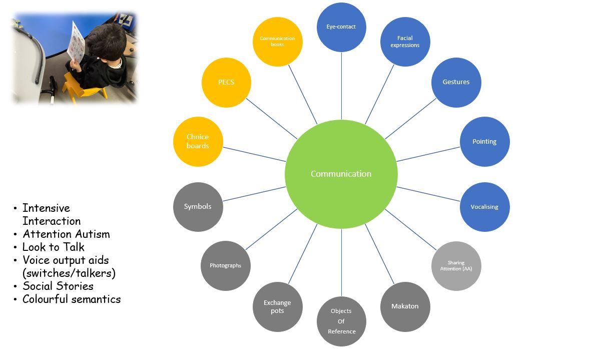 • Universal Support covers child’s communication which is supported within the school/classroom environment. It is demonstrated through Continuous modelling of AAC mode at Phase or Stage recommended. Includes the use of simple language models, Makaton, OOR, choice boards, Attention Autism etc. Needs & support noted in EHCP & pupil profile.